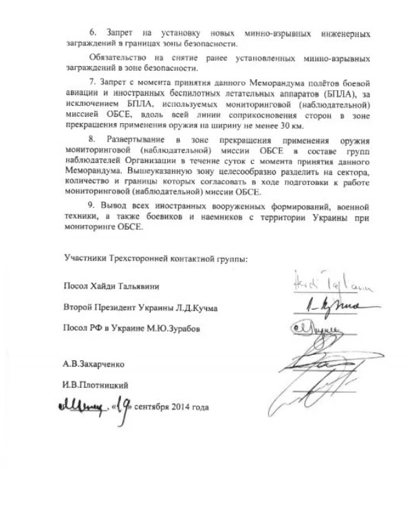 Одинадцять років тому, у вересні 2014 року, країна стикнулася, як тоді здавалося, з найбільшими викликами на той час. Редакція вирішила нагадати читачам документ, який був підписаний з представниками сторін.